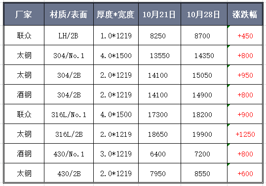 然而,封盤是為了繼續(xù)造勢,拉漲則是為了更好地刺激市場。本周,201冷熱軋價格齊頭并進。周初,熱軋已有沖破8000元/噸的勢頭,至周三誠德開盤大漲500元/噸,華樂合金11月指導價開盤大漲600元/噸后,眼看今天誠德又全線封盤了,漲價更是底氣十足。