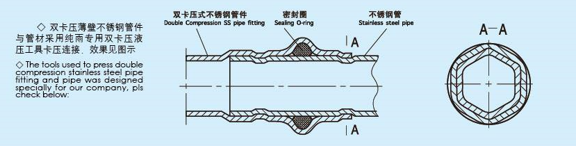 不銹鋼雙卡壓管件中雙卡壓的含義是一種利用金屬材料的效剛性和密封材料的彈性壓縮比原理,在管件的U型槽的兩側(cè)用一種專門的卡具,進(jìn)行壓接的管道方式,這種連接管道方式,我們稱之為雙卡壓式,這種連接管道的方式充分利用了承接口的長(zhǎng)度。
