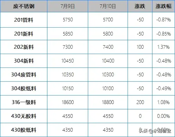 較昨日早間,今日早間市場201報價部分持平,部分下跌30-50元/噸;304報價部分持平,部分下跌50-100元/噸,目前主流報價區(qū)間:201新料5700-5800元/噸;304新料在10300-10400元/噸。
