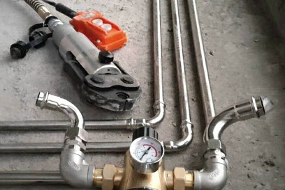 不銹鋼飲用水管與管件采用熱熔連接,最可靠,操作方便,氣密性好,接口強度高,連接前應(yīng)清除管道及管件上的灰塵和異物,管道與管件連接采用專用卡壓工具(分手動和電動)。