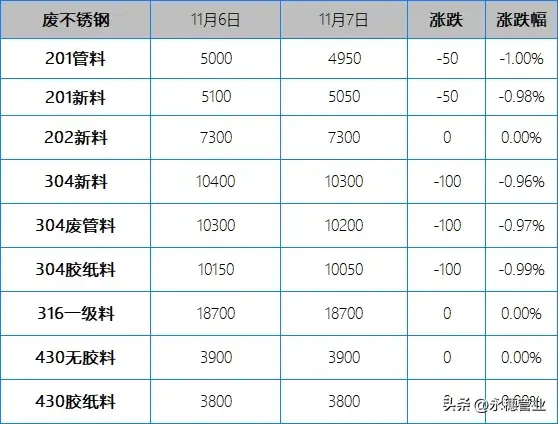 午后,304不銹鋼純水管制管坯料喊漲成交向好;廢料上調30-80元/噸