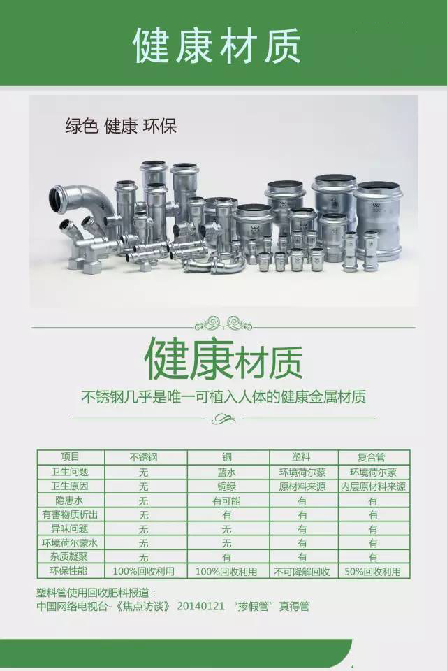 在這樣的大背景下,不銹鋼管材以其幾乎為零的漏水率和無與倫比的健康性被推上了城市供水系統(tǒng)和建筑物水管領(lǐng)域。研究并實際表明,一旦不銹鋼管材被廣泛運用,城市管網(wǎng)的漏水率將大幅度降低,建筑物水質(zhì)將得到充分保障。薄壁不銹鋼管材以其所特有的安全性、可靠性、清潔性、耐用性、經(jīng)濟性和環(huán)保性等各方面突出優(yōu)勢,為保護水資源、改善水質(zhì)、保護人們的健康和提高生活質(zhì)量,保護人們的健康的提高生活質(zhì)量,保護環(huán)境和促進社會經(jīng)濟的可持續(xù)發(fā)展發(fā)揮關(guān)鍵作用。