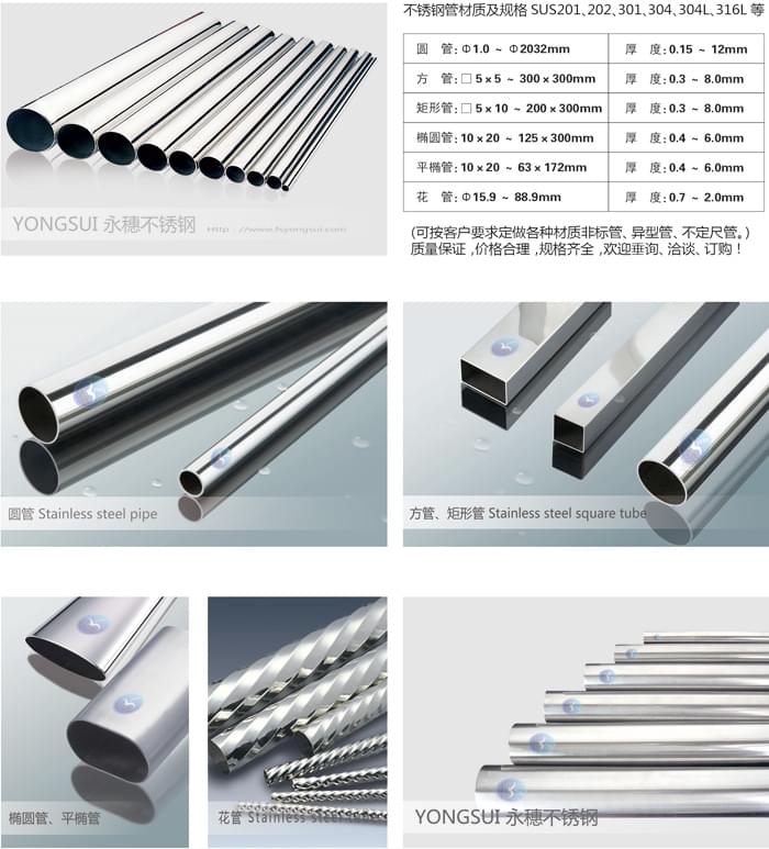 尊敬的客戶(hù)您好!這里是永穗不銹鋼,本公司專(zhuān)業(yè)生產(chǎn)不銹鋼機(jī)械構(gòu)造用、304不銹鋼管,304L不銹鋼方管,316不銹鋼管,316L不銹鋼矩形管,304裝飾管廠(chǎng),304矩形管,304方通,非標(biāo)不銹鋼管訂做管、316L不銹鋼工業(yè)管、不銹鋼方管、304不銹鋼裝飾管、非標(biāo)不銹鋼方矩管。